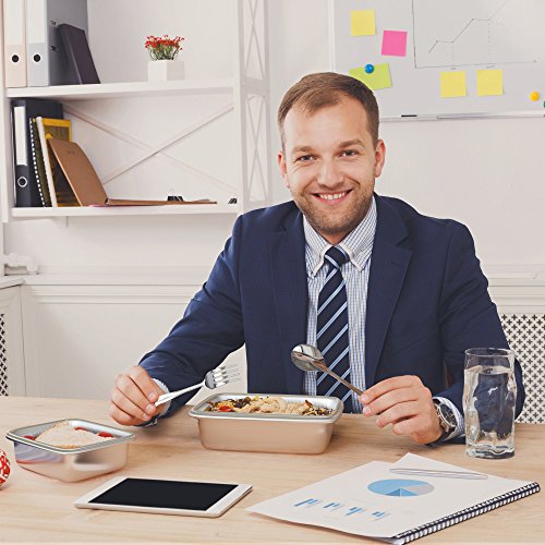 SAFE HEALTHY AND DURABLE- The lunch box is made of premium food grade thick 304 stainless steel , easy to clean, reusable and eco-friendly .Edges are rounded and folded over so there's no way anyone could cut or hurt themselves with this lunch tray.