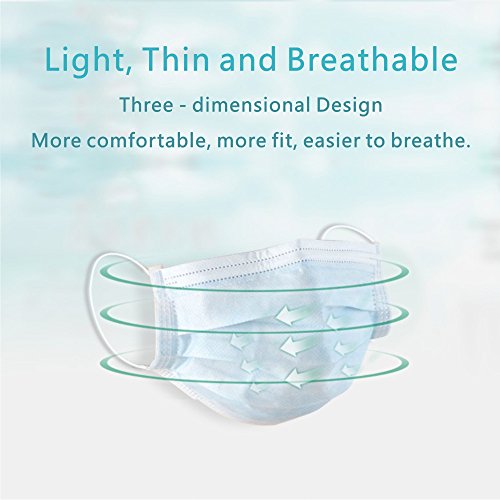 BESAFTY - 50 Pcs 3-Ply Blue Commercial Dental Surgical Medical Disposable Earloop Face Masks.Sterile Independent Packaging, Medium size for Adult.