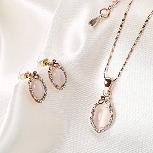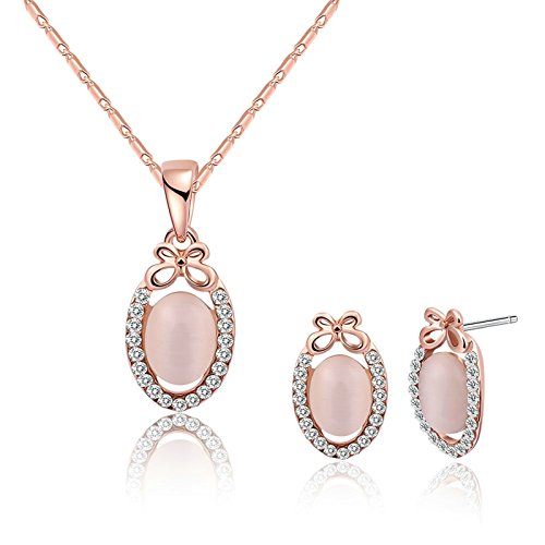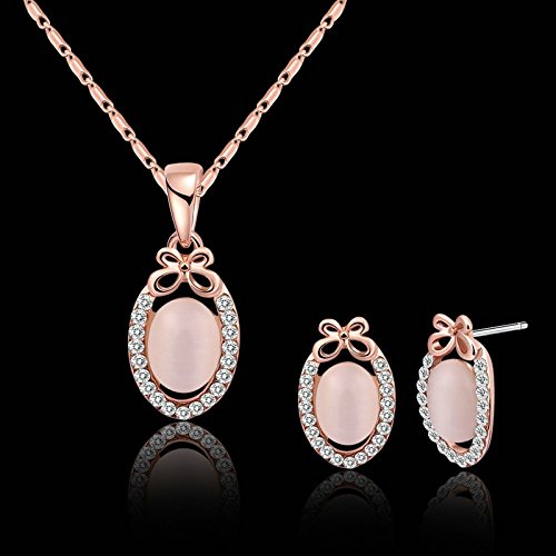 -. Title : MoAndy Jewelry Set For Women Butterfly Necklace Earrings Oval Rose Gold