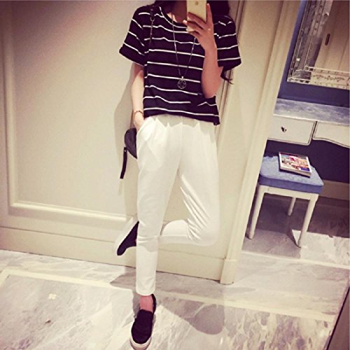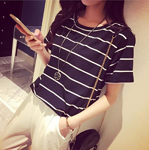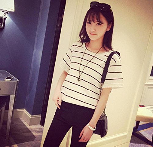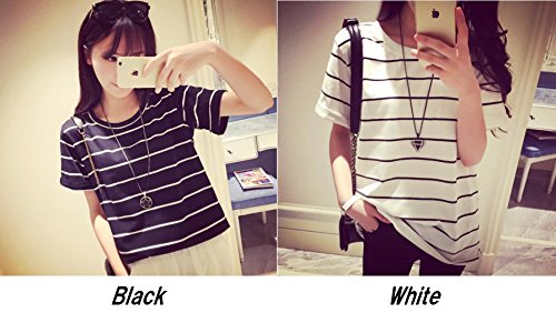 -. Feature : 定番人気の半袖 ボーダー Tシャツです。ツートンのボーダー・デザインがアクセントになったお洒落で旬な1枚です。女性らしい柔らかい印象のクルーネック(丸襟、丸首)がデコルテをキレイに魅せてくれるフェミニンなレディース・トップスです。薄手の生地がふんわり風に揺れ、爽やかな印象を与えてくれるので、これからの季節に大活躍すること間違いなし♪ ざっくり大きめの半袖(5分袖)が気になる二の腕をカバーし華奢見せしてくれます。 / 春夏に活躍する肌ざわりのよい通気性抜群の生地が、着心地よく清潔感のあるカットソー。女性らしいエレガントな雰囲気を醸し出し、シンプルなストライプはなんにでも合わせやすく、清楚なきちんとコーディネートにも◎。カジュアルにもシックにも、取り入れるだけでオシャレ度が上がるゆったりざっくりの便利シャツ。カジュアルなデイリーユースにも、ビジネス、オフィス、通勤、通学、デートにも。フォーマルやオケージョン(パーティ、結婚式、二次会、お呼ばれ、入学式、入園式、卒業式、卒園式、発表会、演奏会、七五三等)にも。 / シンプルで大人可愛いデザイン・カットソーは、裾をボトムにINしても、そのままさらりと羽織って着ても◎ スカートでもデニムでもOKで、ボトムスを選ばないのも嬉しいオシャレアイテム。デニム、ワイドパンツ(ガウチョパンツやスカーチョ)との楽ちんコーデや、キチンと感のあるタイトなボトムスと、ブーツやヒール、パンプスなどのシューズを合わせれば、ぴりっと辛口にまとまった、大人のカジュアルコーディネートが完成。 / 毎日着ても飽きのこない着まわし力の高いナチュラルなデザイン。春、夏はインナーやキャミソールの上に羽織って♪ 秋、冬にはやアウター(セーター チェスター トレンチ ダウン コート ジャケット)やファッション小物(ストール マフラー スヌード)などを合わせてコーデを楽しんでくださいね。さらりと着れる女性らしいボックス・シルエットは体型カバー効果もあり、ママコーデやお洒落なマタニティウエアとしてもおススメです。 / リピ買い続出の人気アイテムでプレゼントにも◎♪シンプルなバイカラーデザインで、落ち着いたフェミニンな雰囲気が、年齢問わず(20代、30代、40代、50代)季節問わず(春、夏、秋、冬)オールシーズン活躍すること間違いなしの便利アイテムです。【カラー】ブラック(黒色)、ホワイト(白色)【サイズ 】M、L 、XL【素材】コットン、ポリエステル、裏地:なし、付属品:なし   ※サイズ(寸法)をお確かめの上、ご購入ください。