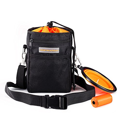 Studio : HoneyGuaridan Publisher : HoneyGuaridan Binding : Misc. Product Description What a perfect dog treat training pouch for all dog lovers who love getting outside and being active! Now we bring you a new lifestyle of pleasure relaxation with your dogs while you guys are going to join a party in Dog Park or wander and walk your dog about freely. We do make sure you guys never meet it before! Did you ever get in trouble and hard to find your dogs' treat while you play with them outdoor? With HoneyGuaridan Dog Treat Pouch, worrying free about searching for treats and toys. This tiny highly designed pouch will be attached tightly around the waist, belt or shoulder, offering you variety ways of storage use. Brilliant and special design offers appropriate and enough space to hold and store your dog's favorite treats and toys and can also securely save your items, such as keys, smart phone and some cards. Poop bag dispenser would furthest reduce your annoyance about excreta from your furry friends by offering a fresh doggy waste bag everywhere. We do believe that you won't refuse to own this convenient training bag when you walk your dog outside where you may face to many different cases. Let our cute tiny pouch stay with you and help you to store the treats and toys, hold up to any accessory and keep you free to enjoy the moment with your lovely dog, pleasure to be a great tool in your life. Quickly access treats, toys and accessories right when you need them! ? 3 ways to wear (42" waistband, metal clip, shoulder strap)? ? Dog waste bag dispenser? ? Store your phone, keys, cash ? External mounted drawstring? ? Great looking intelligent design? ? 100% money back guarantee 0