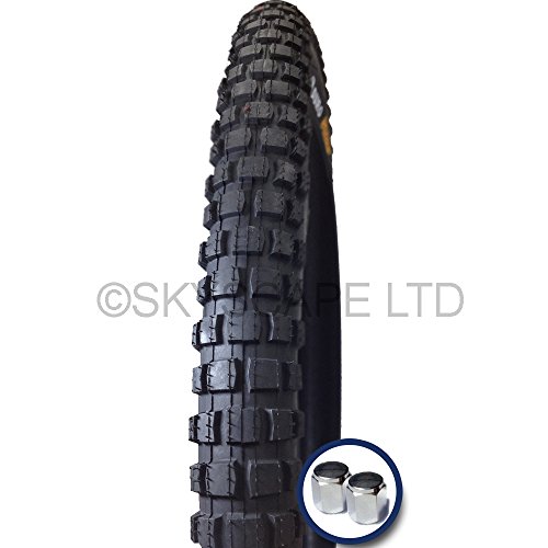 -. Feature : DIRT/OFF-ROAD STYLE - Provides excellent rolling & grip characteristics both on on and off-road / EDGE TO EDGE GRIP - Tread pattern goes around to both side walls for extra protection / CLASSIC WIRE BEAD - Giving prolonged strength and durability / FREE METAL VALVE CAPS - 3x Higher air retention over standard caps / SKYSCAPE CAPS WORTH $4.99 FREE - Schrader style (Presta available by request/email at the time of your order)