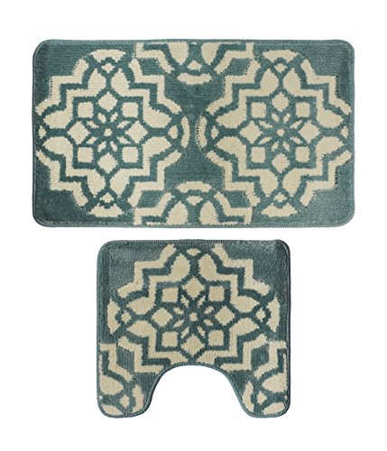 Bathroom 2 Pieces Bath Rug Pedestal Mat Set Contour and bath mat Aqua Beige