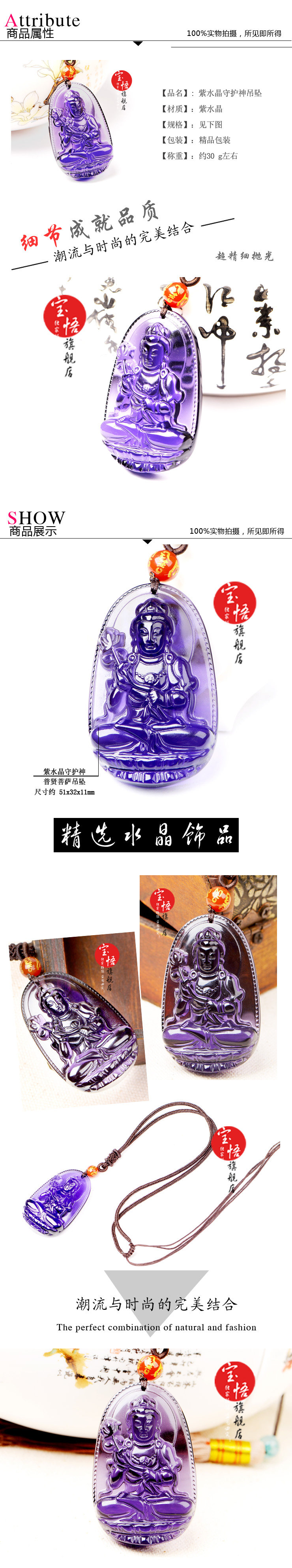 开光紫晶大势至菩萨吊坠十二生肖马本命佛守护神吊坠