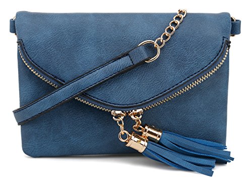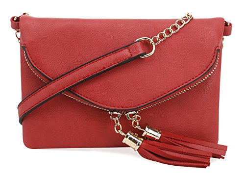 Lily Jane's Tassel Crossbody Bag has a chain strap with an adjustable vegan leather strap section (20" - 24" drop) for where it rests on your shoulder. The crossbody bag can fit even plus sized phones with ease. There's 5 compartments in total - 1 open main, 1 zippered pocket on the flap, & 3 card slots inside the main. Made of synthetic leather & gold metal tone hardware, the clutch has an invisible magnetic clasp to keep your contents secure.Feature