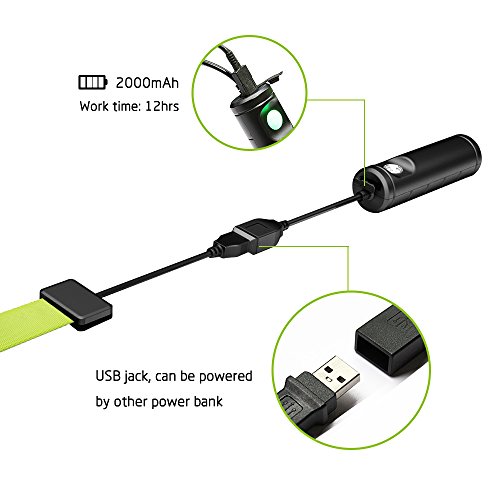 - The light can last about 12hrs with provided rechargeable18650 battery, USB jack allows you to charge the light with power bank.