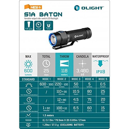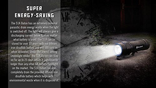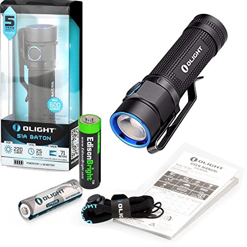 Olight S1A Baton Cree LED 600 Lumens Flashlight With 1.5V AA ithium Iron Battery and EdisonBright AA alkaline battery bundle