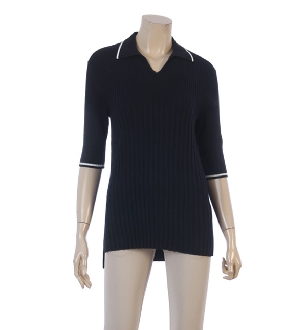 LIST, 군더더기없이 심플한 디자인으로 차분하여 포멀한 분위기를 연출하는 골지 니트 티셔츠입니다