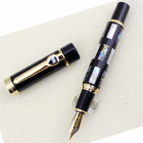 With Real Sea Shell Luxury Fountain Pen Jinhao 650 Black 18kgp Medium Nib Great Wall