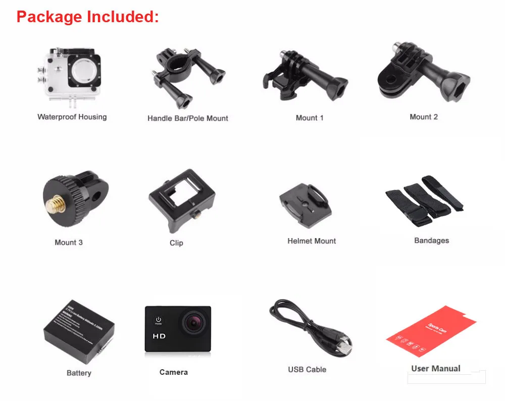 - Perfect for: Outdoor Sports, Extreme Sports, Water Sports, Home Security, Car DVR, Diving, etc