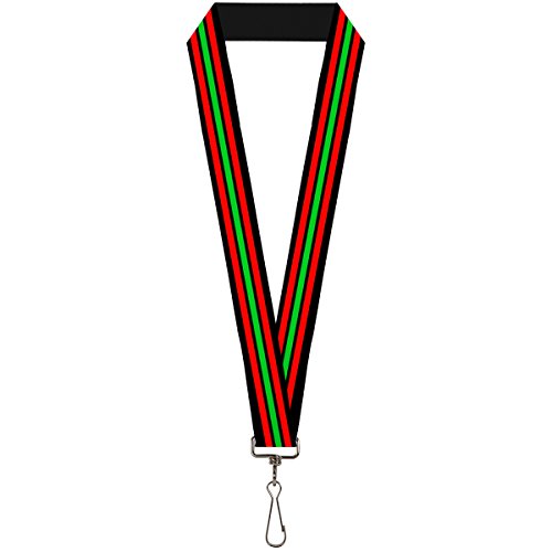 -. Binding : Apparel -. Brand : Buckle Down -. Department : unisex-adult -. Feature : This lanyard is made out of stretchy nylon, and has a stainless steel clip to easily detach your keys / Show off your favorite style / The lanyard is 1.0 inches wide, and a standard length -. Label : Buckle-Down -. Manufacturer : Buckle-Down -. MPN : LY-1.0-W37109 -. NumberOfItems : 1 -. PackageQuantity : 1 -. PartNumber : LY-1.0-W37109 -. ProductGroup : Apparel -. ProductTypeName : ACCESSORY -. Publisher : Buckle-Down -. Studio : Buckle-Down -. Title : Buckle-Down Lanyard - 1.0" - Stripe Trio Black/red/green/black Accessory