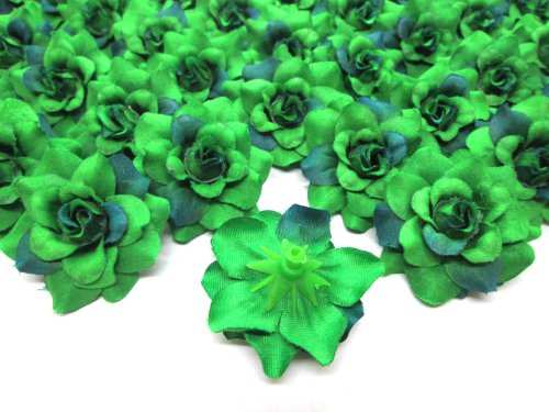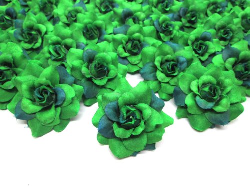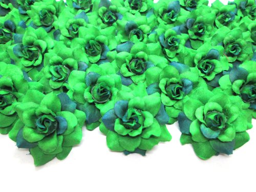 (100) Silk Two Tone Dark Green Roses Flower Head - 1.75" - Artificial Flowers Heads Fabric Floral Supplies Wholesale Lot for Wedding Flowers Accessories Make Bridal Hair Clips Headbands Dress