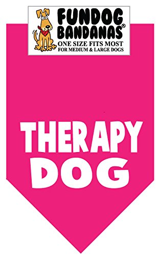 -. Binding : Misc. -. Brand : FunDog Bandanas -. Color : Hot Pink -. EAN : 0083351960353 -. Feature : Cute! / Fun! / Affordable! / Makes a great gift! / 22x22x31inches -. Label : The Dog Perk Corporation -. Manufacturer : The Dog Perk Corporation -. MPN : Fun-4928 -. PackageQuantity : 1 -. PartNumber : Fun-4928 -. ProductGroup : Pet Products -. ProductTypeName : PET_SUPPLIES -. Publisher : The Dog Perk Corporation -. Size : One size fits most for medium to large dogs -. Studio : The Dog Perk Corporation -. Title : BANDANA - Therapy Dog for Medium to Large Dogs - hot pink -. UPC : 083351960353