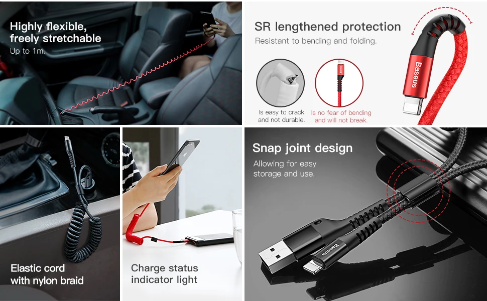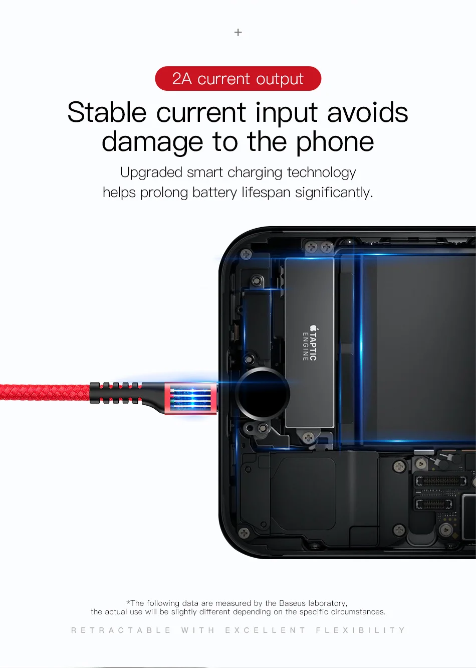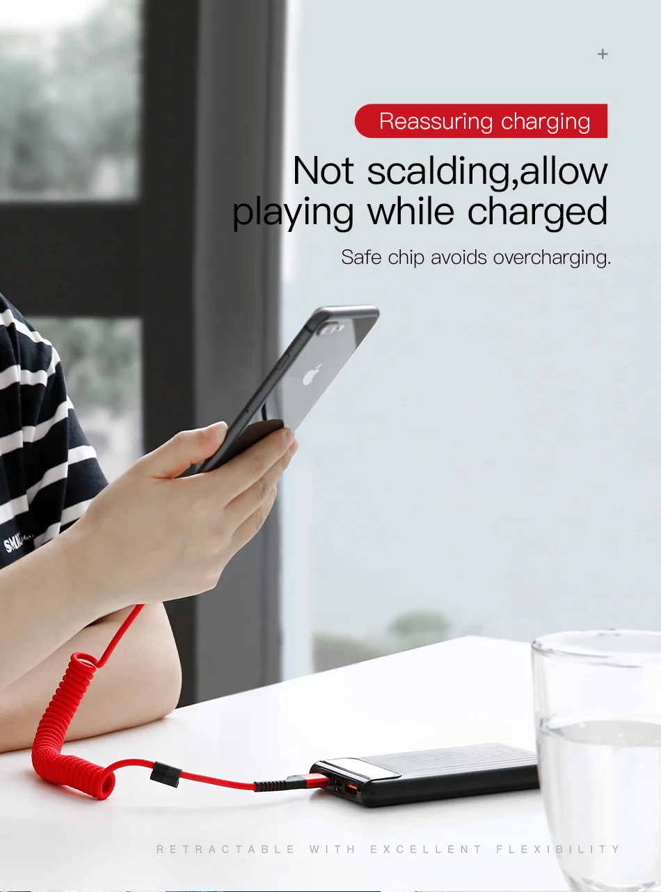 Feature:Retractable USB Cable for iPhone Xs Max Xs XR X 8 7 Plus