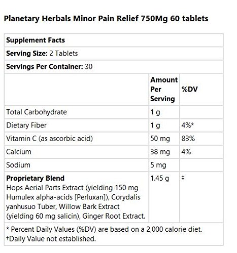 ReleaseDate : 2013-08-17 Studio : Planetary Herbals Publisher : Planetary Herbals Binding : Health and Beauty Product Description Minor pain relief planetary herbals powerful?minor pain relief(tm)?unites age-old tradition with modern science. This comprehensive formula combines corydalis, a primary minor pain relieving herb extensively used in china, with willow bark, traditionally used in the west. Also included are powerful cox-ii inhibitors from ginger root and humulex(tm), a hops extract for relief of minor pain from daily activities or overexertion. 0
