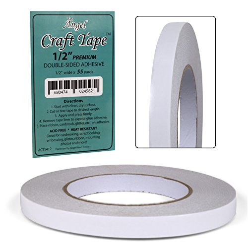 Angel Crafts 1/2" by 55 YARDS Double-Sided TAPE Adhesive - BEST for Scrapbooking, Crafts, Ribbon, Glitter, Origami, Cards, Boxes - Permanent, Acid Free & Heat Resistant