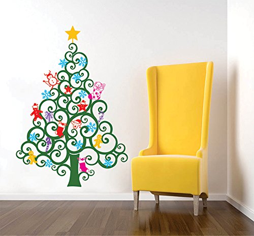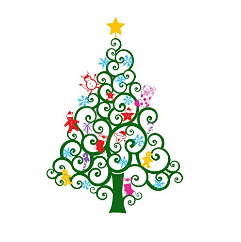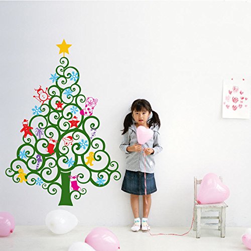 PopDecors Wall Decals & Stickers - Happy Christmas Tree Wall Decal (59"H) -Holiday Sticker Kids Love Christmas Ornaments Candy Cranes Wall Decors PT-0219