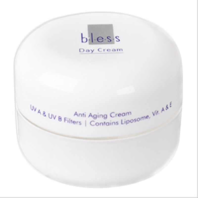 Bless Day Cream mengandung UV A & UV B filter yang melindungi kulit dari sinar matahari. Membantu memperlambat penuaan dini karena mengandung Liposome, Vit.A & E.