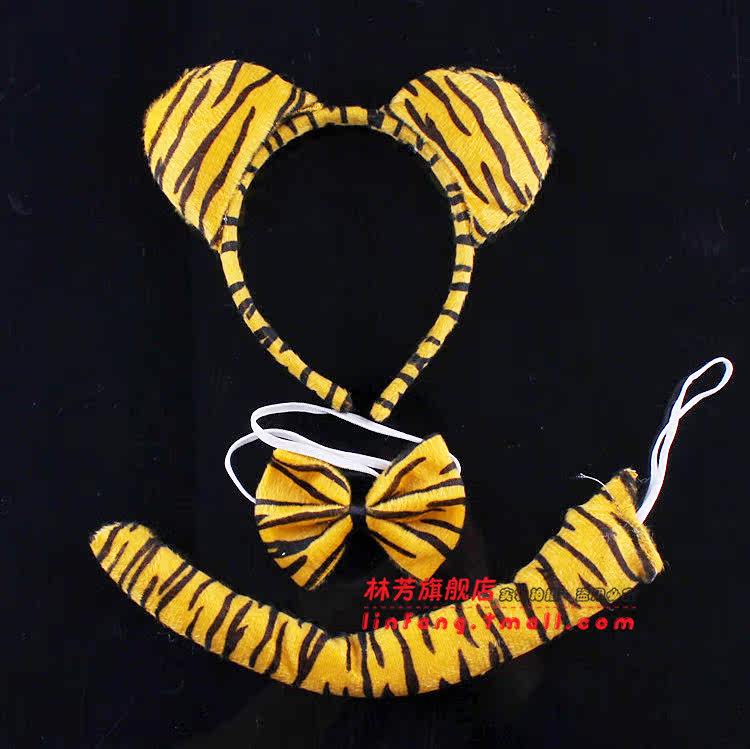 林芳55g六一派对表演头饰万圣节用品头箍动物三件套 老虎3件套