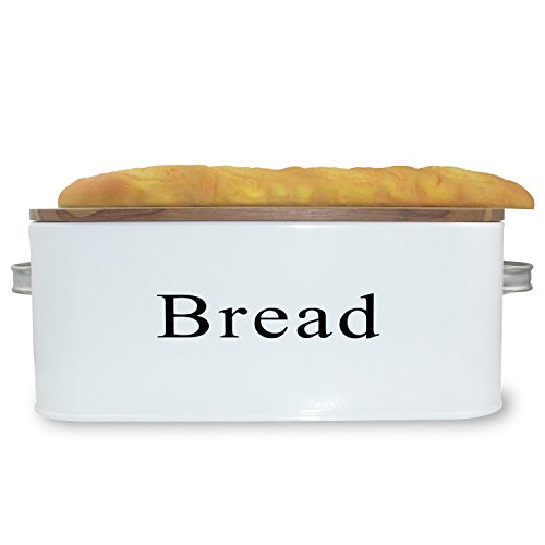 KWELS Vintage Bread Box / Bread Bin Storage Container for Kitchen Counter with Bamboo Cutting Board Lid White 12"X7"