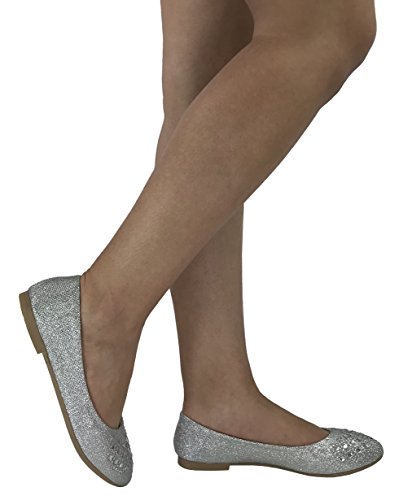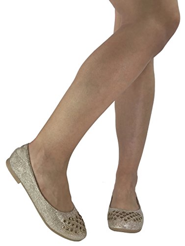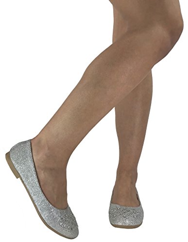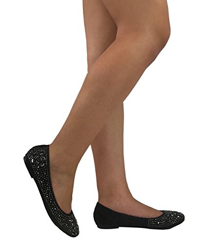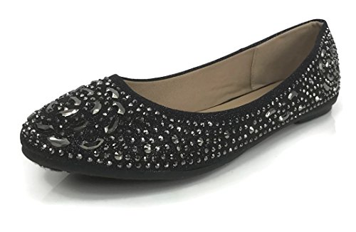 | Womens Crystal Rhinestone Coverered Ballet Flats Slip On Shoes |