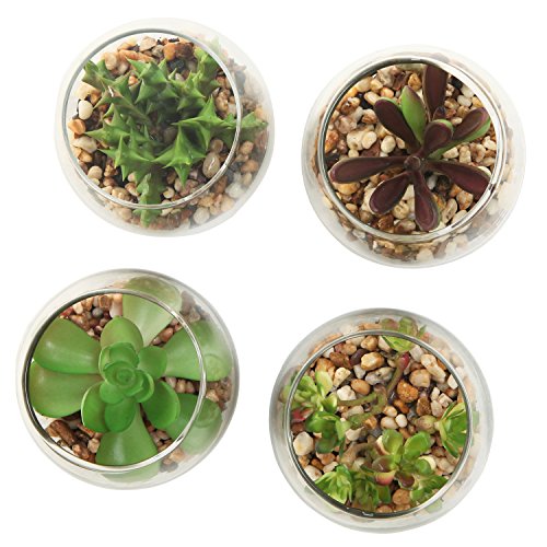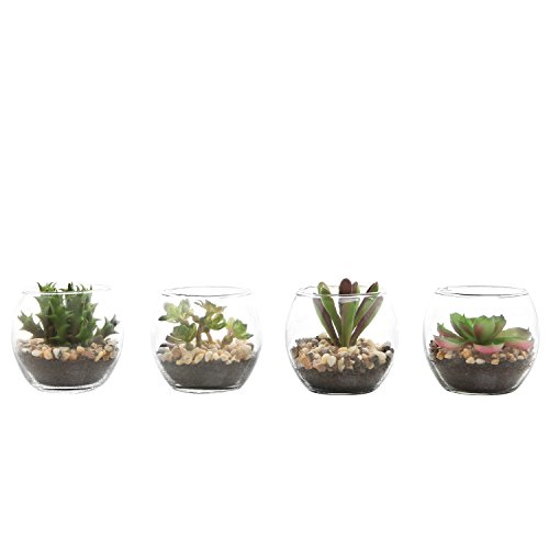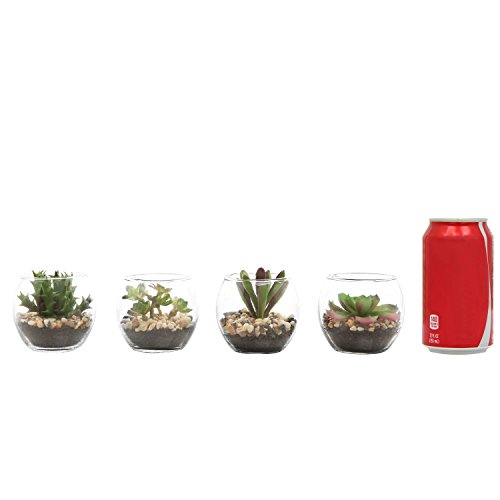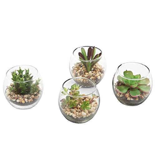 Set of 4 Mini Artificial Succulent Plants w/ Round Glass Terrarium Vases - MyGift