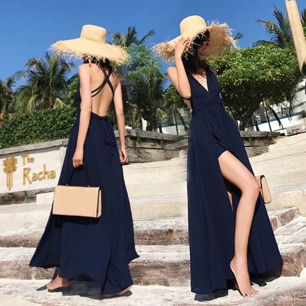 ふわっと広がる涼やかデザインのリゾートドレスです。