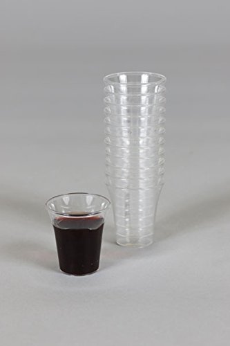 -. Feature : Size Dimensions 1-3/8 " height. 1-1/4" diameter across the top. / Holds approximately .5 oz / Perfectly Smooth Edges / Crystal clear / Fits standard communion trays
