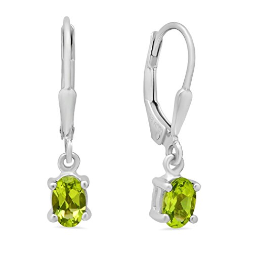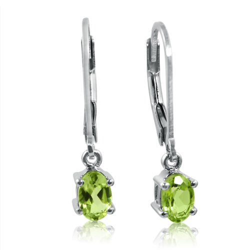 -. Feature : Total Gem Weight: .95 ct tw / .925 Sterling Silver Rhodium Finished Leverbacks / Stones: 6x4mm Peridot / Earrings measure just over 3/4 inch top to bottom including the stone.