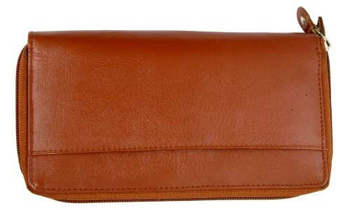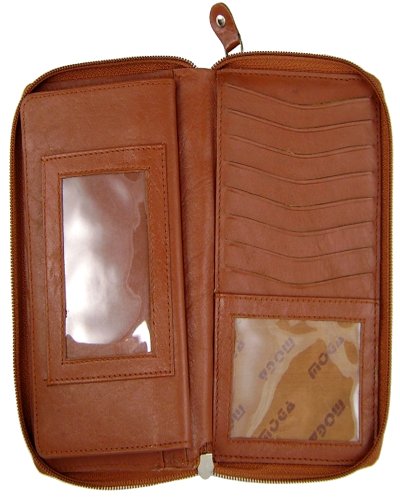 Ladies wallet double zipper wallet have lot of space for money check book holder, credit card holder, ID holder and space for coupons. The MOGA seal signifies ultra-high quality leather and comes in a nice gift box. Size 7.5'' L x 4.5'' W.