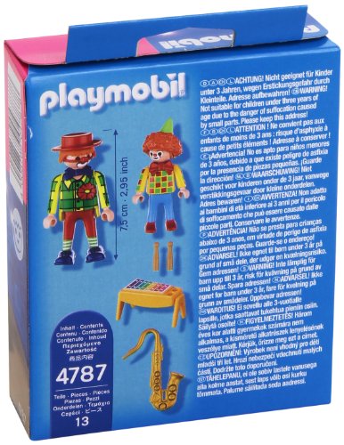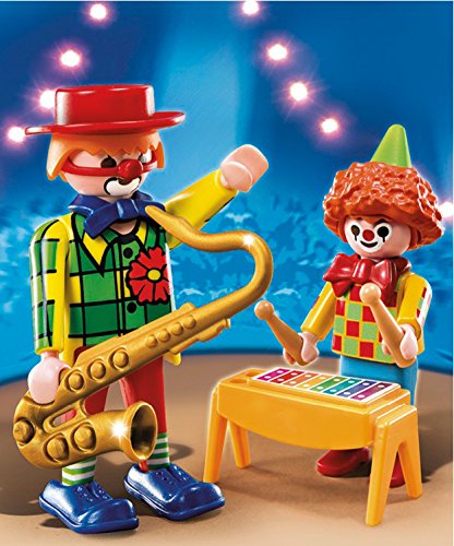 -. Feature : Create the next chart-topping hit with the Musical Clowns / Play with this set on its own or combine it with any other PLAYMOBIL set / Set includes two clown figures, saxophone, xylophone, hats, and other accessories / Encourages children to explore and learn while having fun / Figures can bend, sit, stand and turn their heads