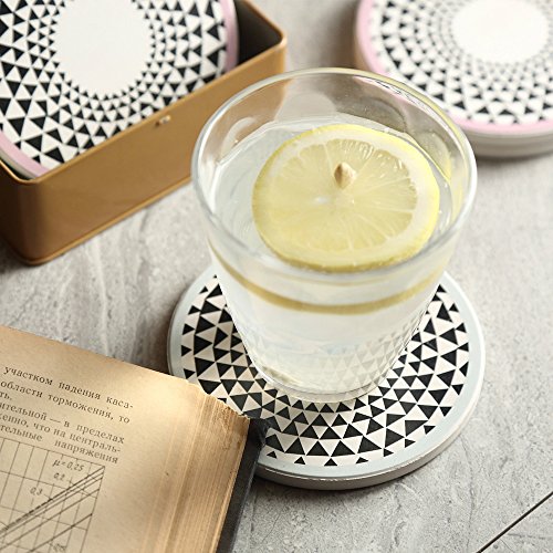 - Made of special absorbent stone ceramic material with Non-Slip cork backing, keeping the desk and the bottom of cup clean, it will never fade or scratch off.