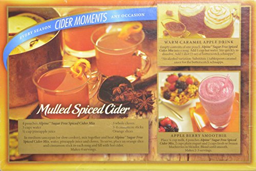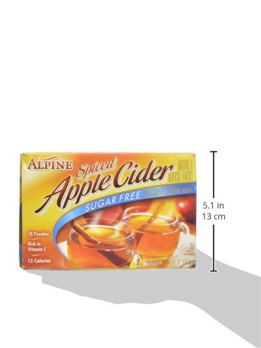 Enjoy delicious spiced cider in a minute with Alpine Spiced Apple Cider Instant Drink Mix. It combines the tangy sweet flavor of apples and the rich taste of spice into a unique beverage with just 15 calories per serving. No need to brew or strain, just open the packet of sugar-free drink mix, 10 count, add hot water and stir. Alpine cider is rich in vitamin C and can be drank either hot or cold. This beverage combines natural and artificial flavors in one spicy drink. It contains that contains 0 percent juice and can be drank by everyone in the family. It is a wonderful option on a winter day.Feature