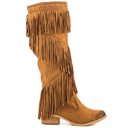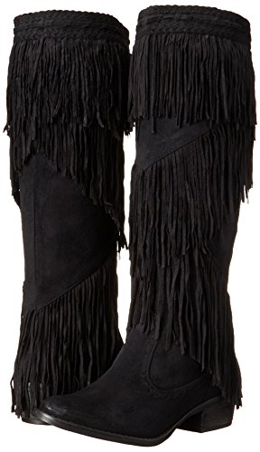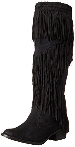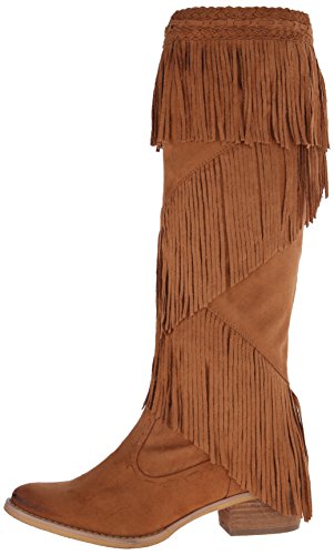 Product DescriptionPull-on construction. Almond toe. Cascading fringe detail. Textile lining. Man-made footbed. Stacked heel. Man-made sole. Imported.0