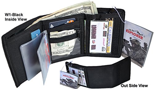 Studio : Exploer Bag Publisher : Exploer Bag Binding : Misc. Product Description Designed to protect all your valuables such as ID"s, credit cards and currency the Every Day Carry trifold wallet has enough slots and pockets to hold them all. With 10 total slots it can hold a multitude of items in one compact space. The main compartment has a zipper to ensure nothing is ever lost. Also many credit card slots make keeping them all organized and easily available. To hold it all together the Velcro closure will keep anything from falling out helping protect all your sensitive information.Features" Trifold Design" Velcro closure" Zipper curreny pocket" 6 Card/ID slots" 4 Card/ID plastic sleeve" Outer ID Holder" Zippered coin pocket" 600D Polyester construction" Size Folded:5"³ x 3.5"³ x .75"³ Inches Approximately" Size Open: 10"³ x 5"³ x .0625"³ Inches Approximately 0