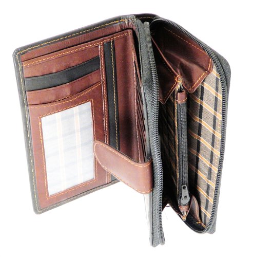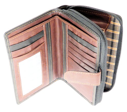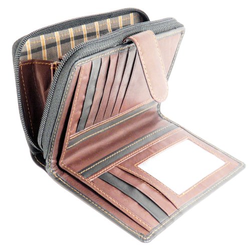 Ladies Versatile Soft Real Leather Wallet Purse & Credit Card Holder With large Zip up Coin Purse / Section - Holds 8 Credit Cards - Black & Brown Color