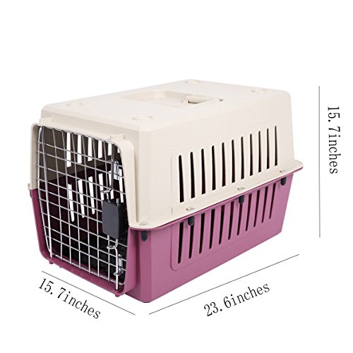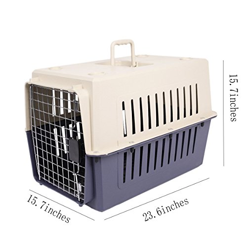 -. Feature : Portable pet carrier for air travel or car travel or visit to the vet for small dogs, cats, rabbits, hedgehogs, chinchillas, piggies, etc. / Airline Approved, meets USA airline standards & International Airline Standards (IATA certification); please check with your airline for travel regulations / Easy assembling indoor and outdoor dog kennel/cat crate of roomy size; Ventilation holes on 4 sides with quick-latching front door / Heavy Duty Plastic Carrier Long Lasting / Choose different sizes depending on your pet size