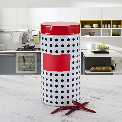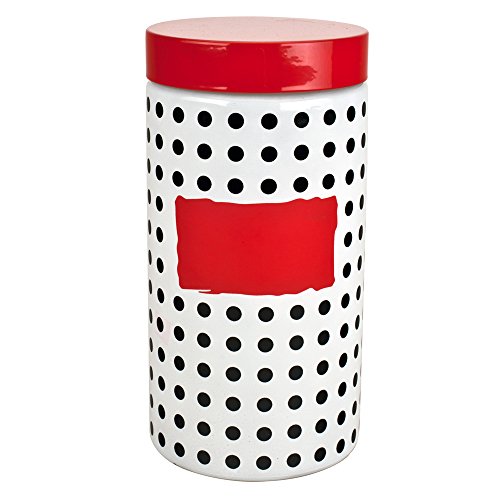 Housewares International 34146 Blue Harbor Glass Jar Polka Dot with Red Lid, 57.4 oz, White
