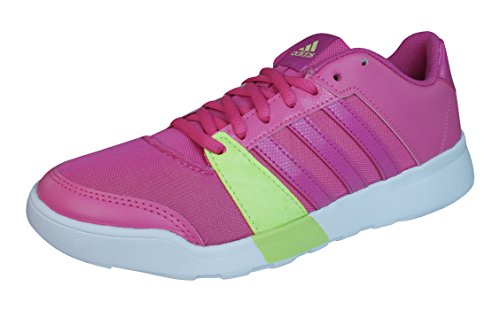 Binding : Apparel Product Description adidas Essential Fun Womens Fitness Trainers / Shoes - Fresh 3-Stripes style with a bold contrast-colour look. These comfortable womens training shoes have a breathable mesh upper for ventilation and cage lacing for added midfoot support. Fresh 3-Stripes style for everyday activity. The Essential Fun shows off bright colourblocking on a breathable mesh upper, with cage lacing for added midfoot support.Features:- Shoes that provide comfort and support for all types of training. - Colourblocked, breathable mesh upper. - Cage lacing for midfoot support. - Strong midfoot support for movement in different directions. - Lightweight cushioning for all-day workouts. - Versatile allrounder for every day. 0