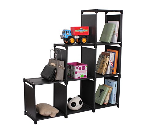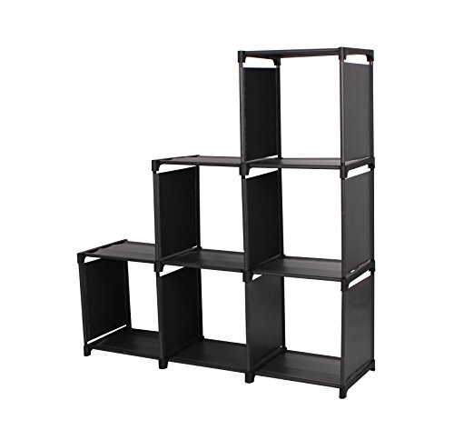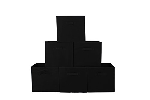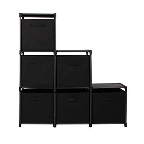 mockins 3 Tier Storage Rack Bookcase Shelf Bundle With 6 Foldable Cube Storage Bins That Perfectly Fit Into The 6 Cube Closet Organizer Cabinet - Black Bins