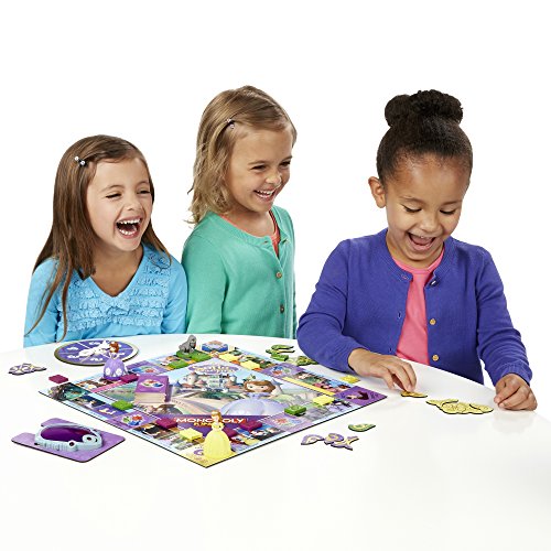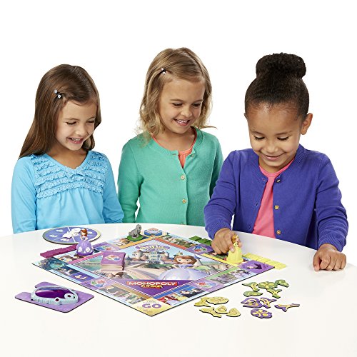 -. Feature : High quality toys for children all ages / Made using safe materials / Tested for quality and durability / Fast-trading Monopoly Junior game is for younger players / Game is like the classic Monopoly game but easier for kids / Adorable Sofia the First character tokens include Sofia the First, Clover the Rabbit and Princess Amber / The first player to collect all 5 pieces of their Tiara puzzle wins / Includes gameboard, 3 character movers, Amulet of Avatar and cardboard base, spinner with arrow and base, 15 lesson book tokens, 24 Headmistress Spell cards, 15 cardboard Tiara Puzzle pieces and instructions