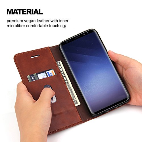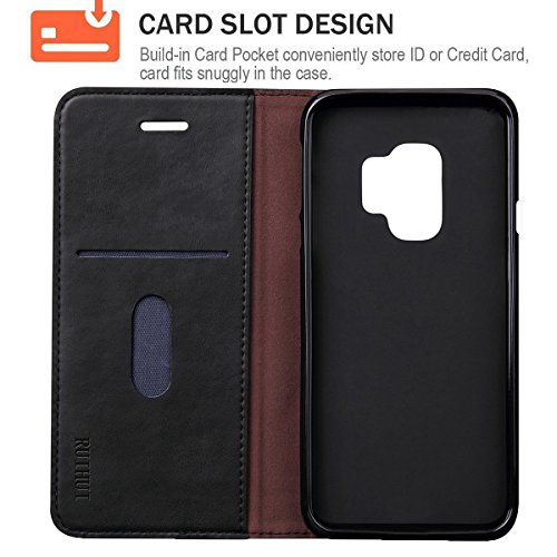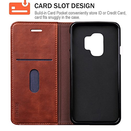 -. Binding : Wireless Phone Accessory -. Brand : Free-Case -. Feature : Compatible with Samsung Galaxy S9 2018 Released Only. / PREMIUM QUALITY AND STYLE: The Leather Case combines a sleek slim fit design with quality that is built to last. Made from premium synthetic leather with secure and straight stitching you will love how it feels in the hand or pocket and it will retain its appearance after lots of wear. / CARD SLOTS AND VIEWING STAND: The cover is very functional and includes wallet-like features such as slots to hold cards. The multi-angle hands-free viewing stand allows your device to stand up independently in landscape orientation - great for video calls, or for viewing media. / SECURE MAGNETIC CLOSURE: A good strong reversible magnetic clasp opens and closes securely, and also folds back so it doesn't get in the way when receiving a call or viewing the screen. / OFFERS GREAT PROTECTION TO THE PHONE: This Wallet does a great job of protecting the phone. Get the benefit of a slim design with impact protection. This cover keeps the phone firmly secured in a snug fitting TPU holding bracket ensuring no risk of popping out if dropped. The flip design lets you use the screen without a screen protector and prevents screen breakages when closed. -. Label : Free-Case -. Manufacturer : Free-Case -. PackageQuantity : 1 -. ProductGroup : Wireless -. ProductTypeName : WIRELESS_ACCESSORY -. Publisher : Free-Case -. Studio : Free-Case -. Title : Galaxy S9 Case, RUIHUI Flip Luxury Leather Wallet Shockproof Protective TPU Bumper Full Case with Card Slots,Magnetic Closure and Kickstand for Samsung Galaxy S9 2018 Released