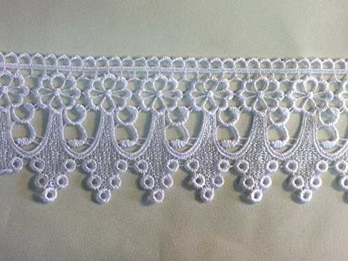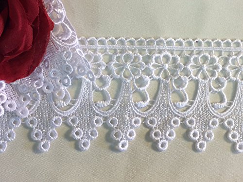 2 Yards, Scalloped Edges w/ Flowers and Diamond Stem, White New, 3" Inches.