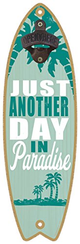 (SJT07215) Just another day in paradise (palm tree image) Bottle Opener 5" x 16" Surfboard Plaque