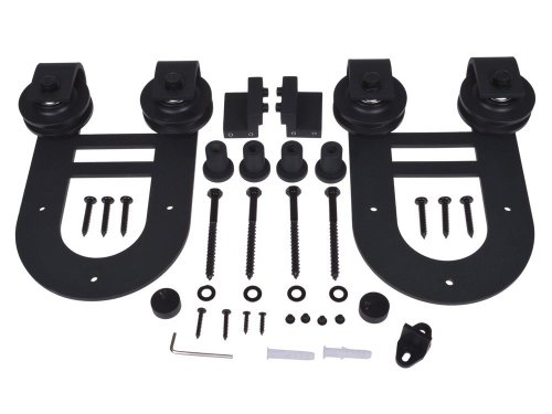 (1) 72" Rail (4) wall hangers (2) horseshoe rollers (2) door stops (1) floor guide. Only the hardware is for sale. Door is not included.