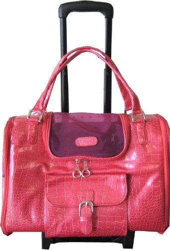 -. Binding : Misc. -. Brand : mpet -. Color : pink -. Feature : Pink Fashion Faux Crocodile Tote/Shoulder Pet Carrier On Wheels-Large P.V.C (SHELL), POLYESTER (LINING). / Zippered two sides opening for easy access to pet. Zippered top opening for more convenience. / Side pocket for pet accessory. Extra side pocket for treats. Ventilation on all three sides. Removable floor insert, and safety clip inside to attach to pet's collar included. / Shoulder strap included Large Size. / Measures W17" x H12" x D9.5" (inch) and holds pets up to 20 lbs. Fits under airline's seat. *Please confirm with your airline -. PackageQuantity : 1 -. ProductGroup : Pet Products -. ProductTypeName : PET_SUPPLIES -. Title : Pink Fashion Faux Crocodile Tote / Shoulder Dog / Cat Carrier On Wheels-Large