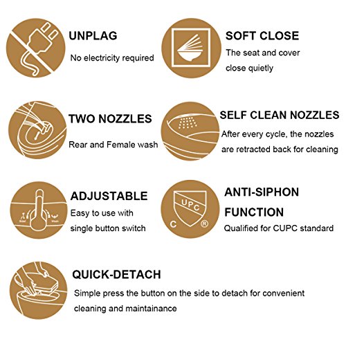 ✔ The bidet seat offers retractable dual nozzles for feminine and rear ambient temperature water cleansing.