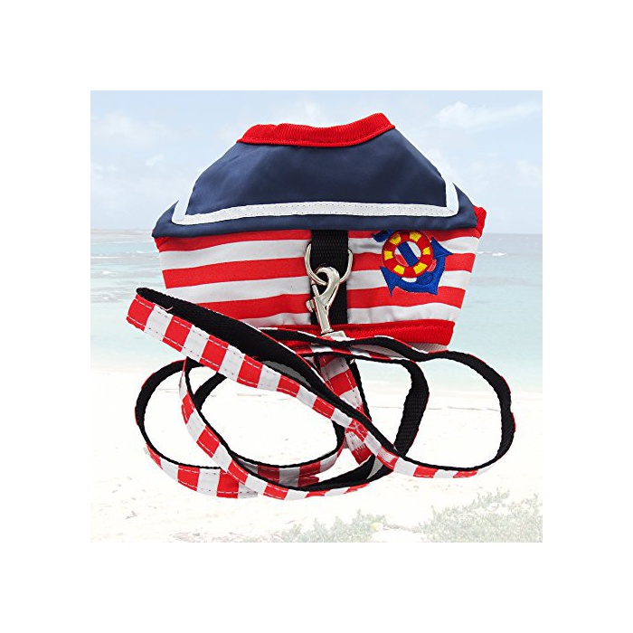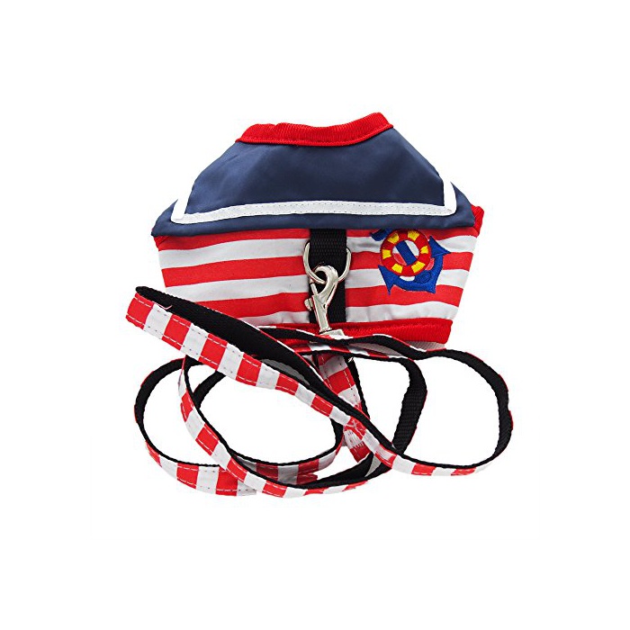 원본상품명:さわやか マリン ボ?タ?柄 刺? 付 ワンピ?ス風 ハ?ネス 小型 の 犬 猫 カワイイ リ?ド セット (赤:S)