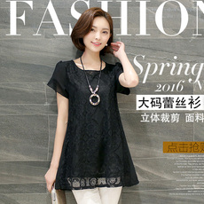 2016新款蕾丝衫雪纺衫大码女装蕾丝镂空
