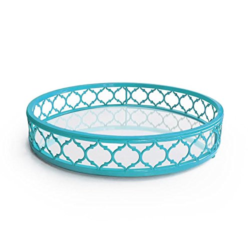 American Atelier Round Metal and Mirror Tray, 16 x 16 x 3.25-Inch, Light Blue